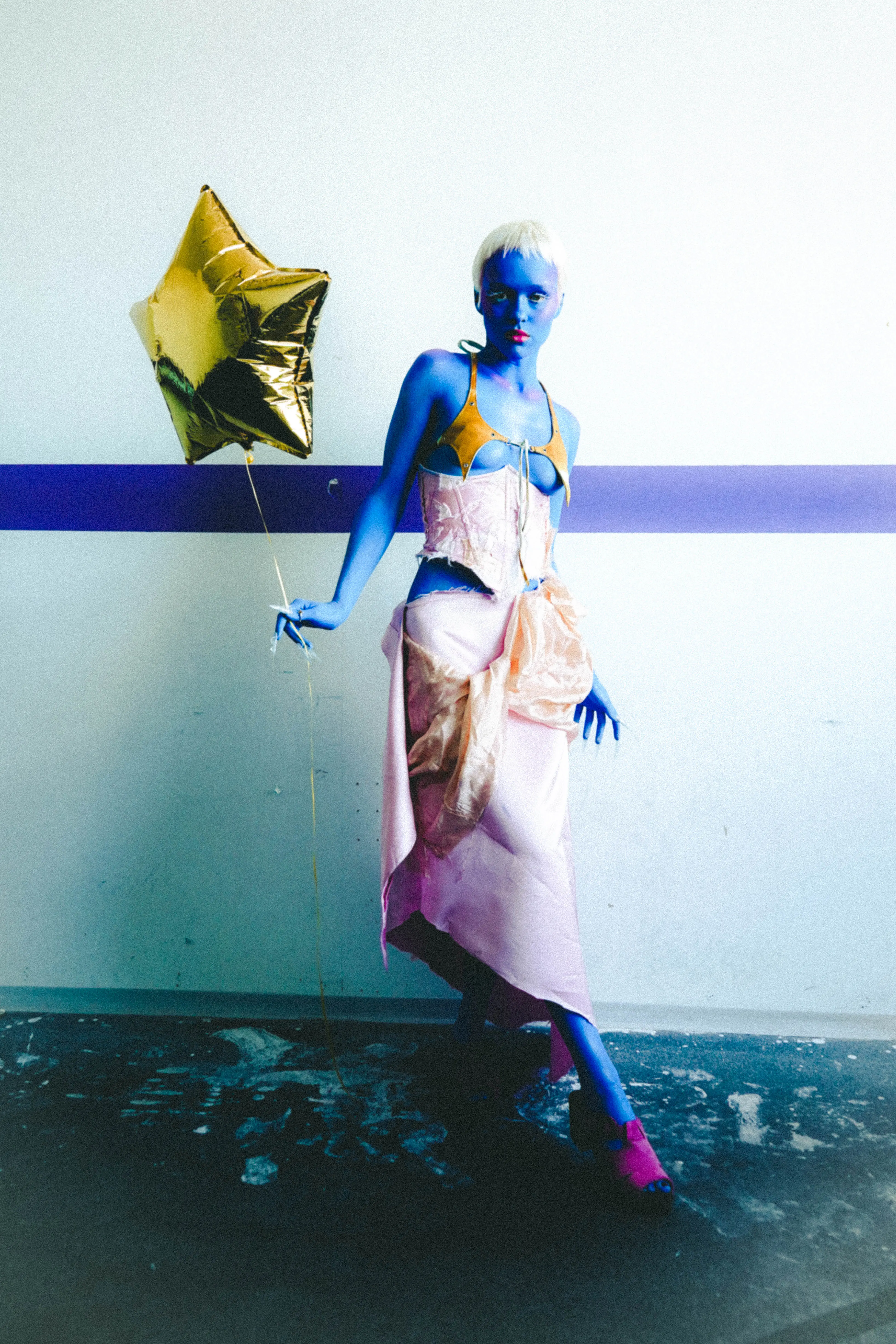 Collaboration of photographer and fashion designer - Freedom Vision x Treimane Studio. We presented an alien woman through our own vision, in an art-house reality. We combined fashion and creativity into one beautiful and magical story. The model is wearing limited collections by the designer herself , as well as clothing specifically curated for this project.